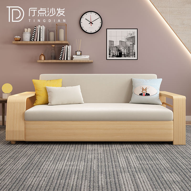 Solid wood sofa bed foldable double storage small apartment living room sitting and lying simple modern dual-purpose multifunctional sofa