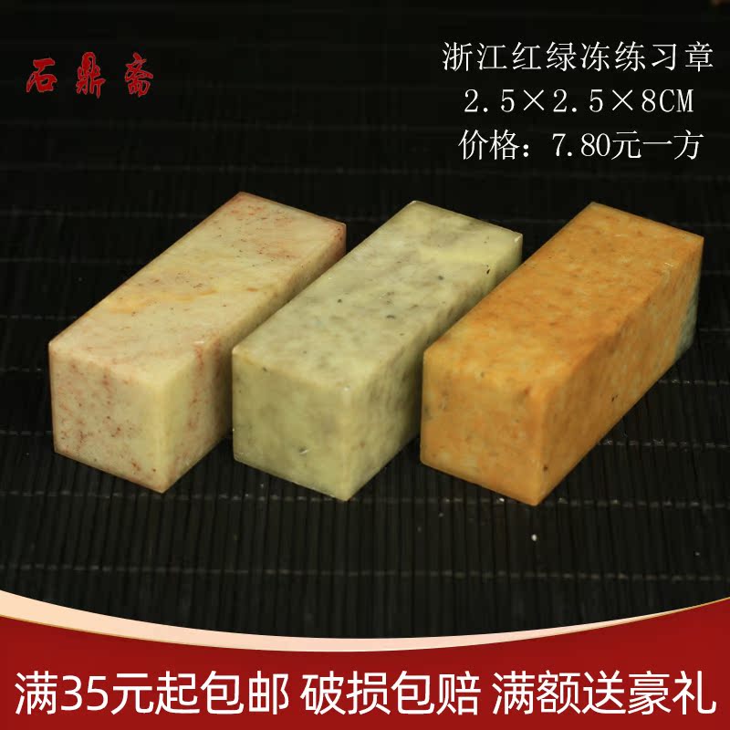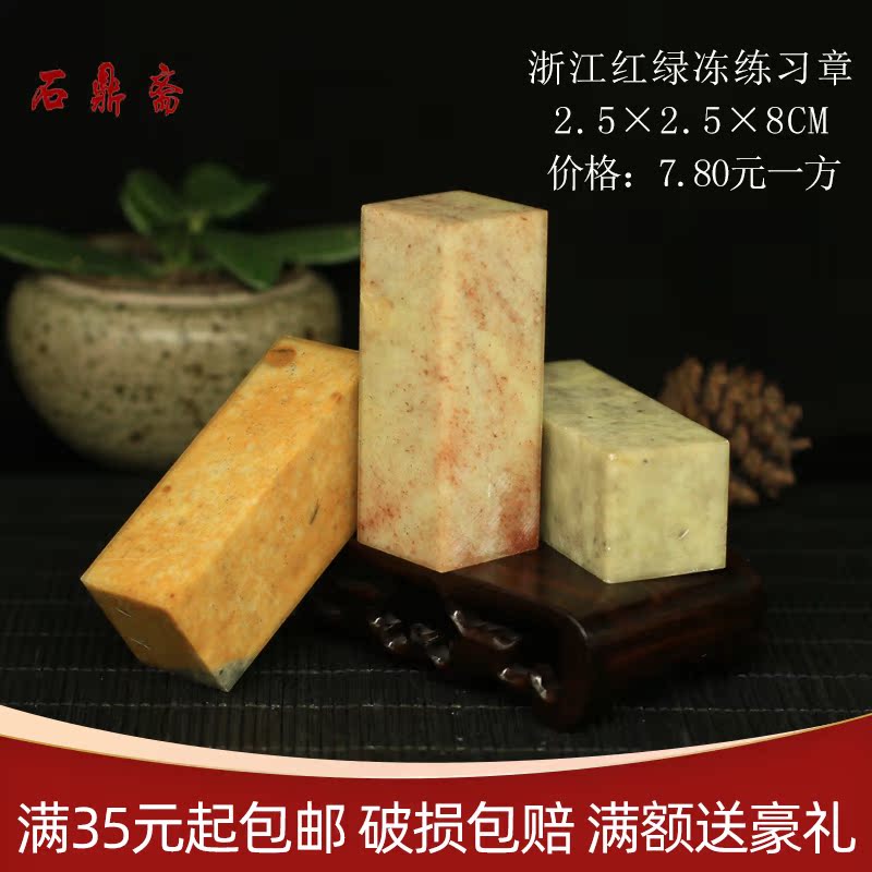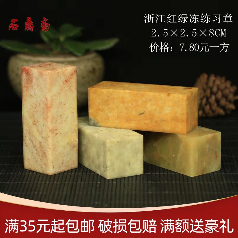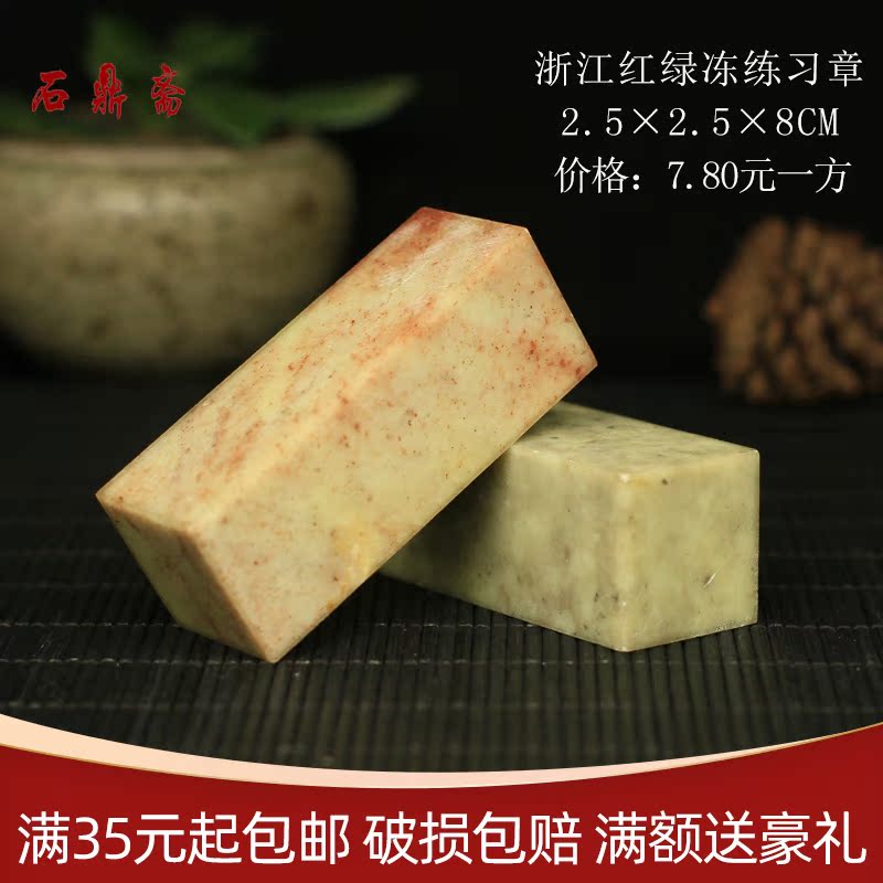 Zhejiang red and green Frozen 2 5*2 5 * 8CM seal stone carving Shoushan stone practice seal calligraphy and painting