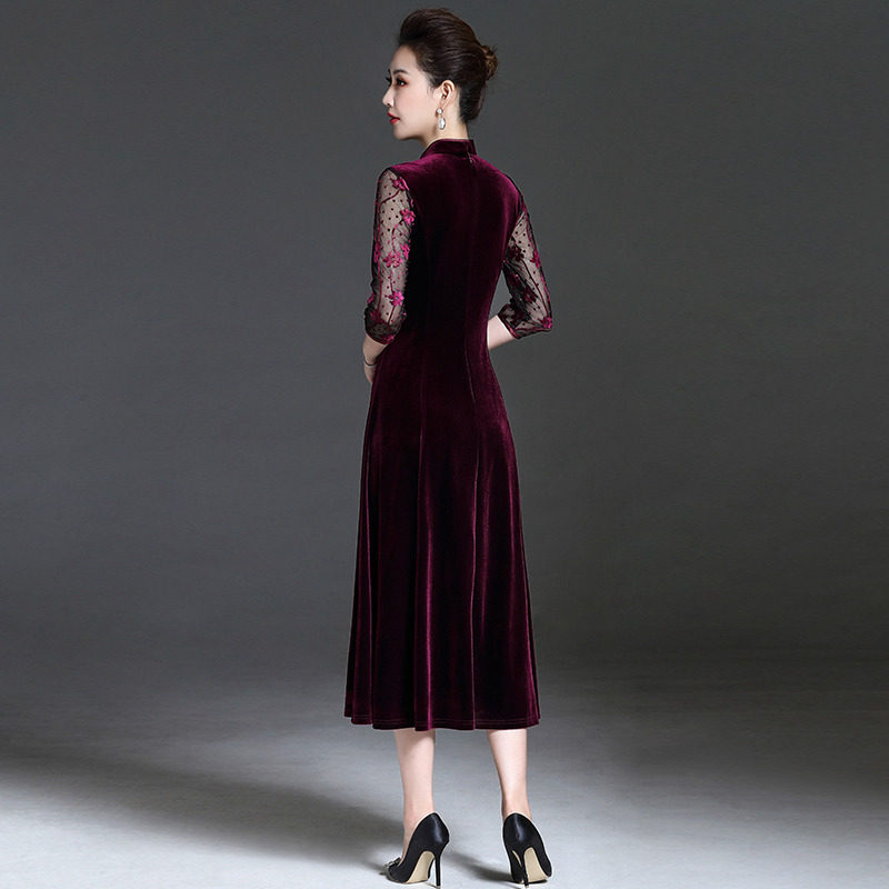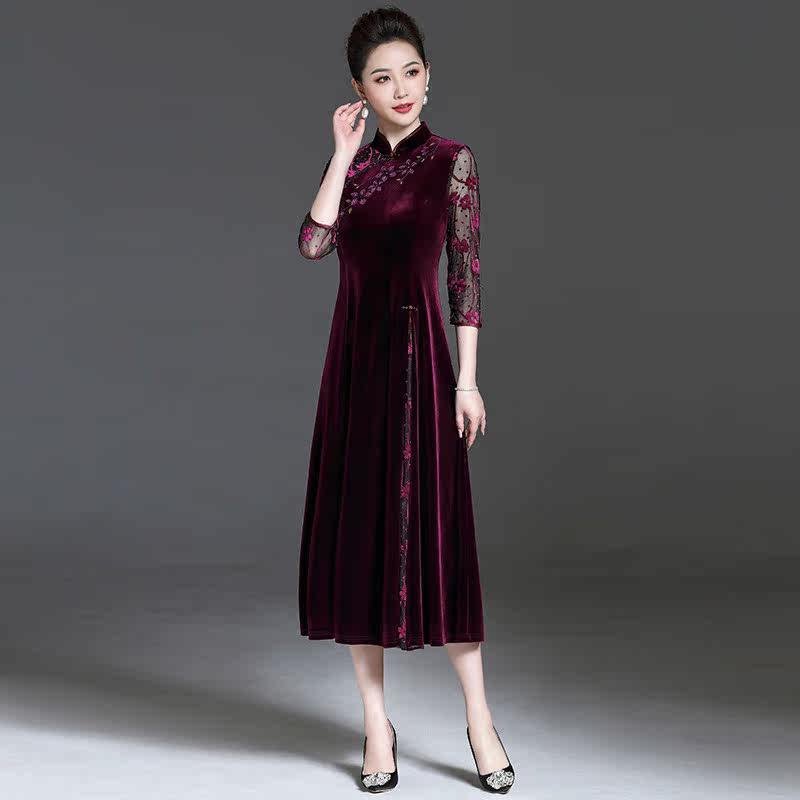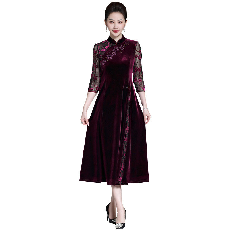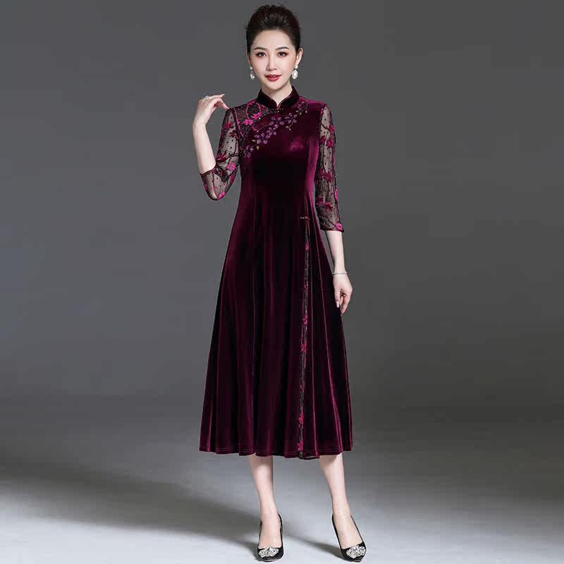 Wedding mother dress noble cheongsam autumn dress 2022 new Xi mother-in-law wedding dress foreign style improved dress