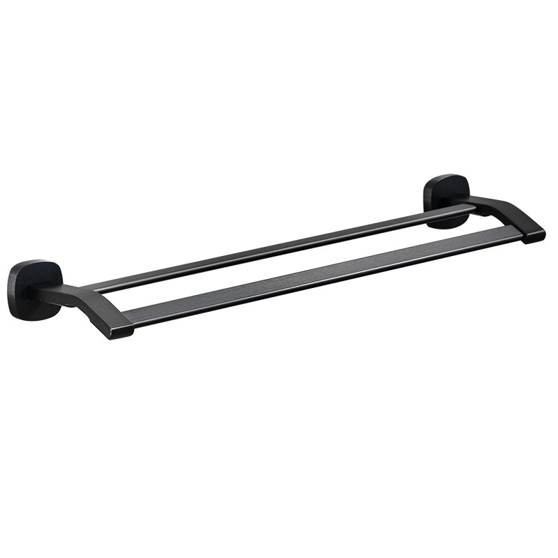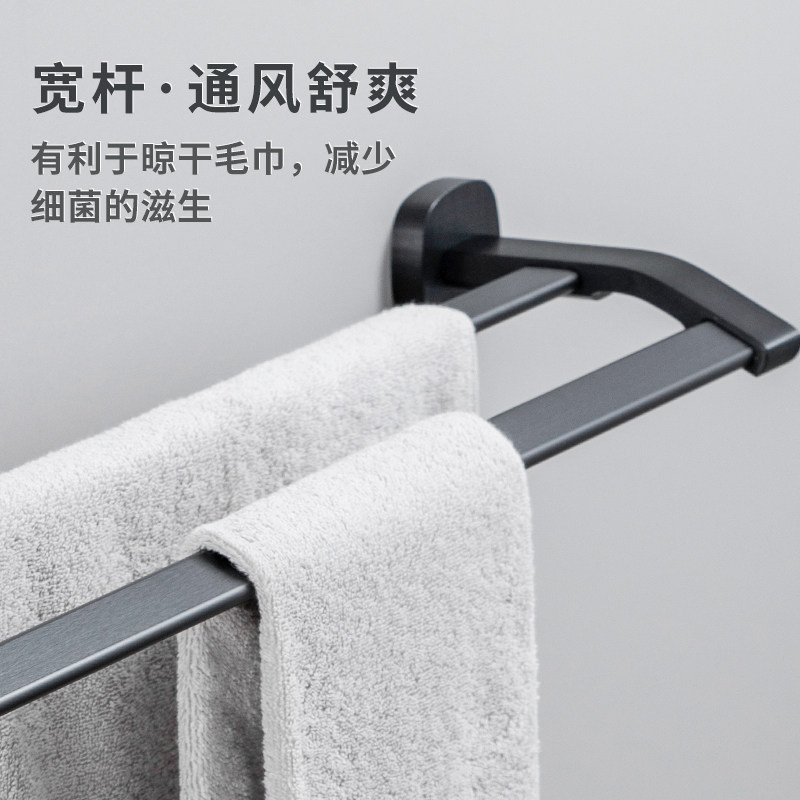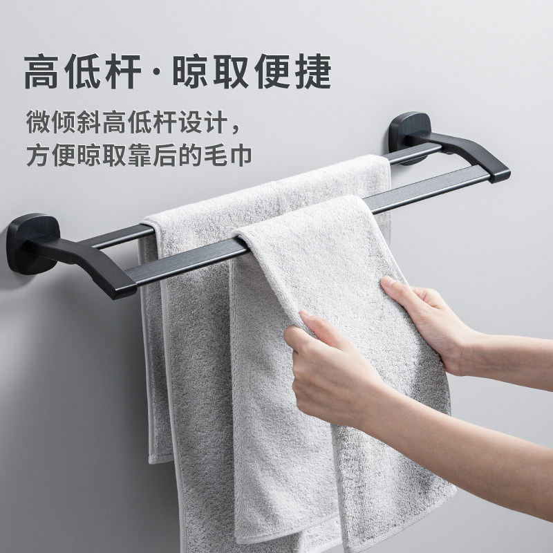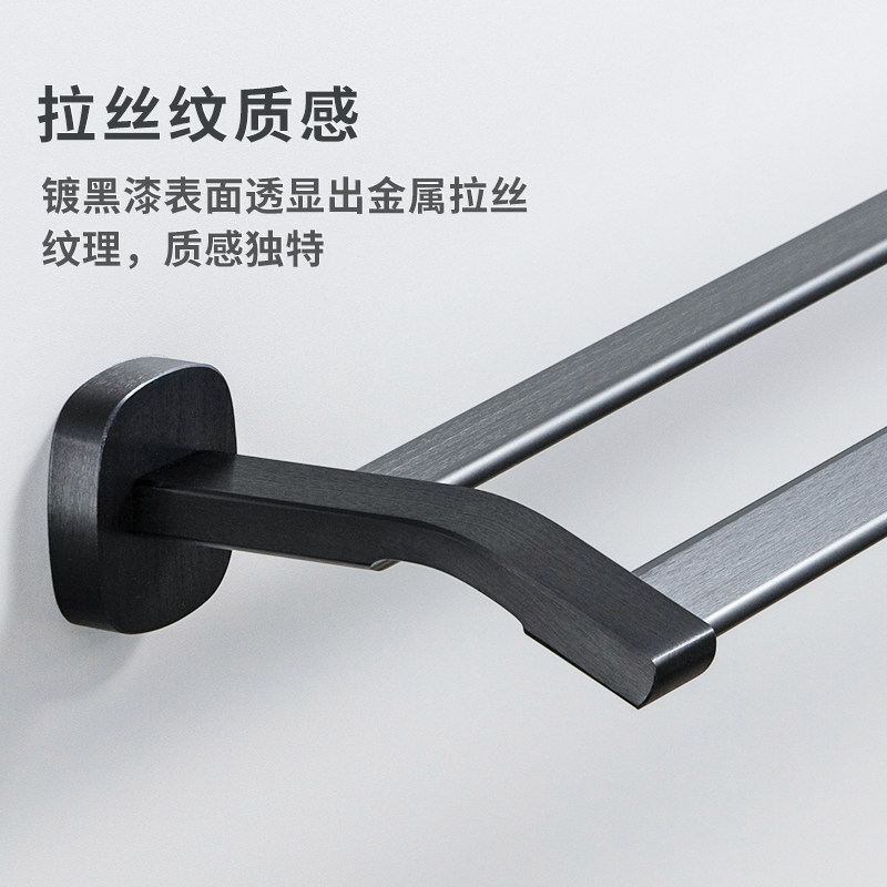 Bathroom towel hanging rack Double-lever wall-mounted Nordic minimalist black space aluminum bath towel rack toilet dressing room pendant