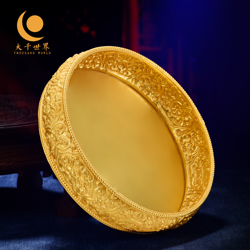 Hidden biography S999 pure silver manzal disc single repair pan silver gilded gold plated gold eight auspicious man tea Luo 12cm