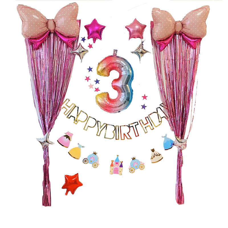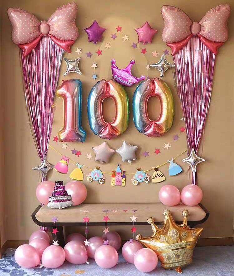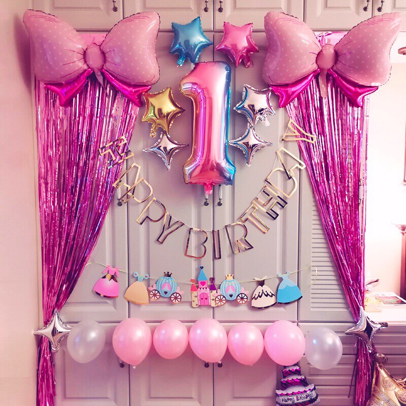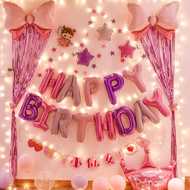 Powder theme girl year old party children 100 days background wall scene layout baby happy birthday decorations