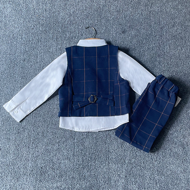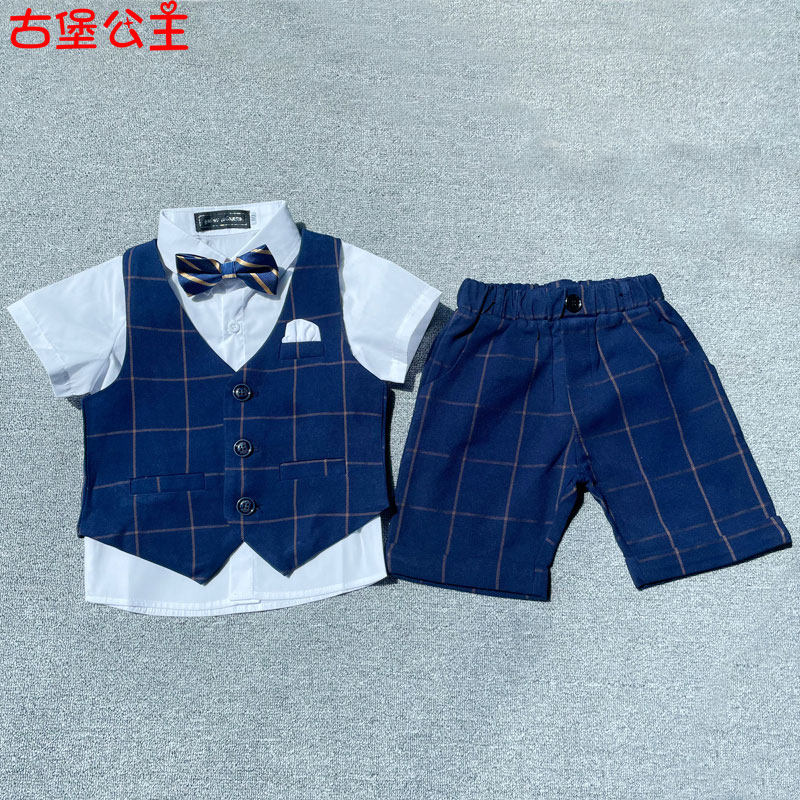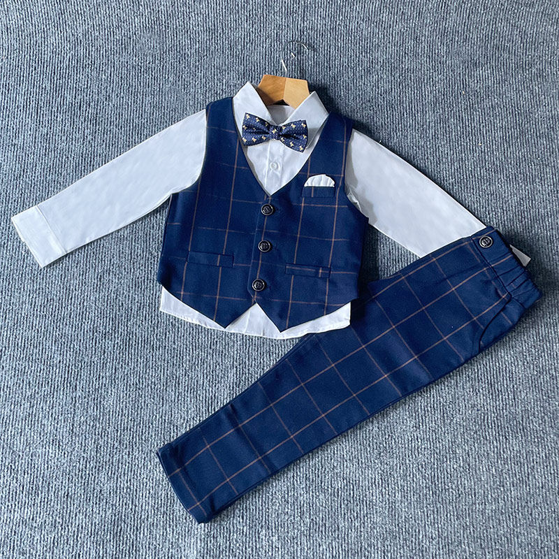 Dark blue 4-piece vest trousers short-sleeved shirt bow tie Blue 4-piece vest trousers long-sleeved shirt bow tie