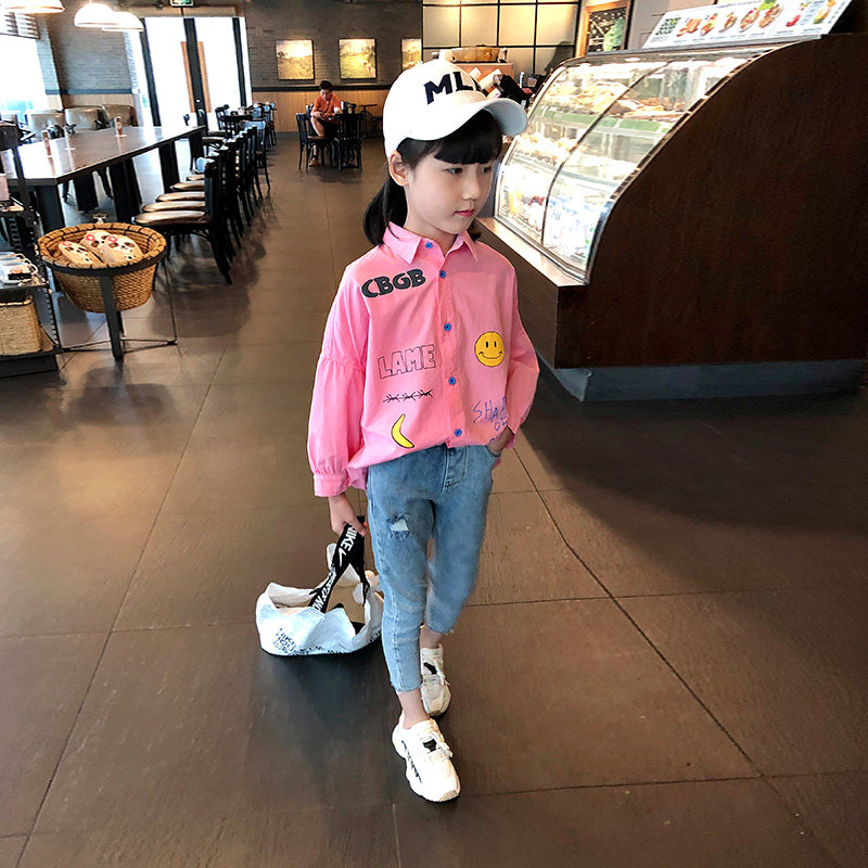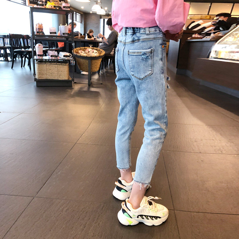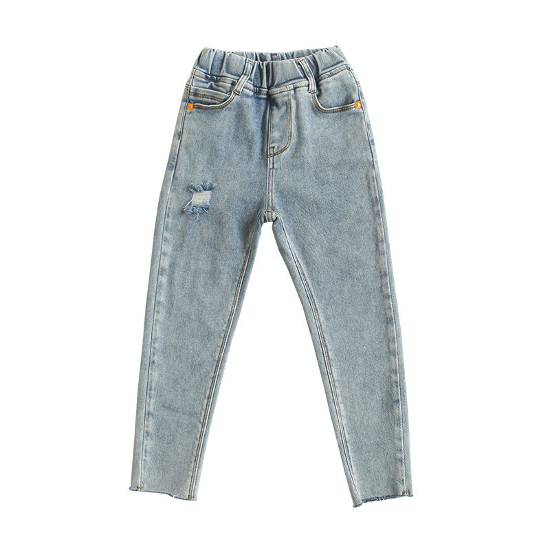 Girls ripped jeans spring and autumn new baby high waist slim long pants in children's western style trend cigarette pants