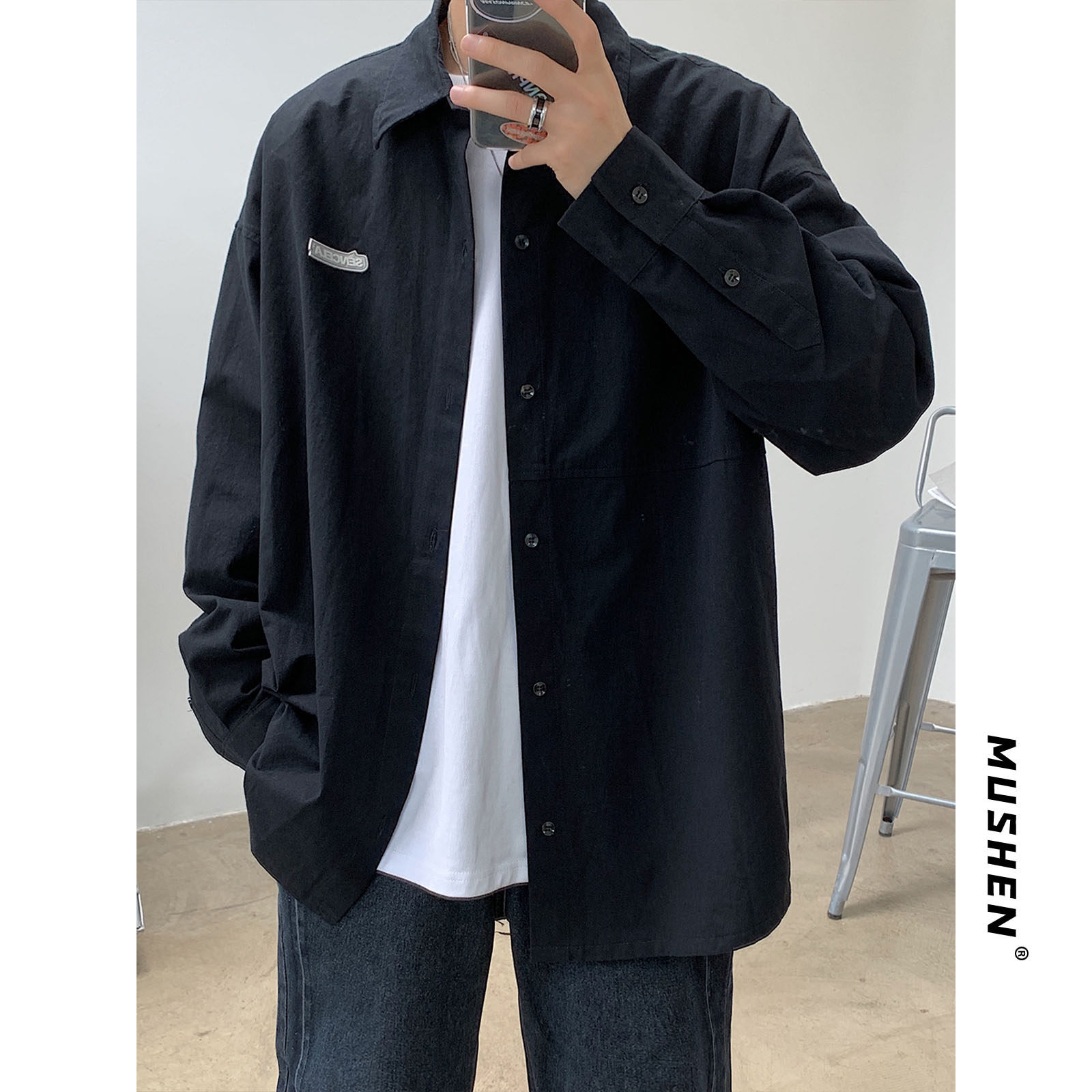 Net Red very fairy pure color shirt male long sleeve Korean version trendy casual handsome air harbor wind day department senior feel shirt tide