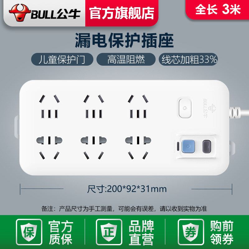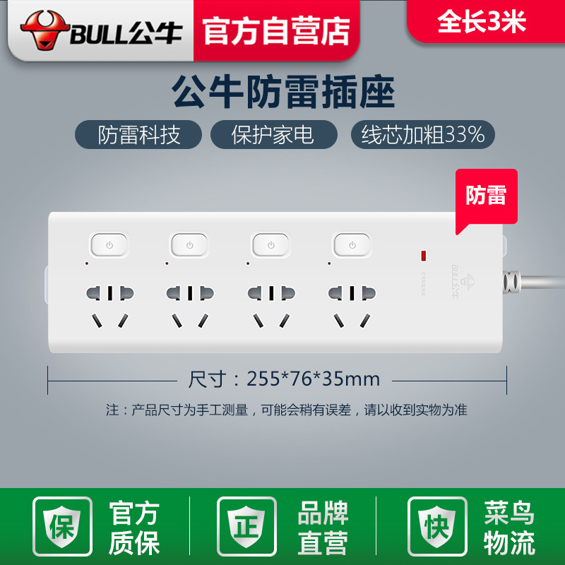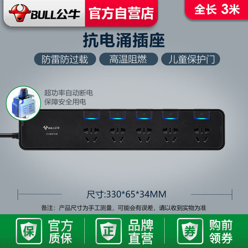 Bull socket anti-surge platoon plug-in computer plug-in overload protection lightning protection leakage protection USB fast charging wiring board