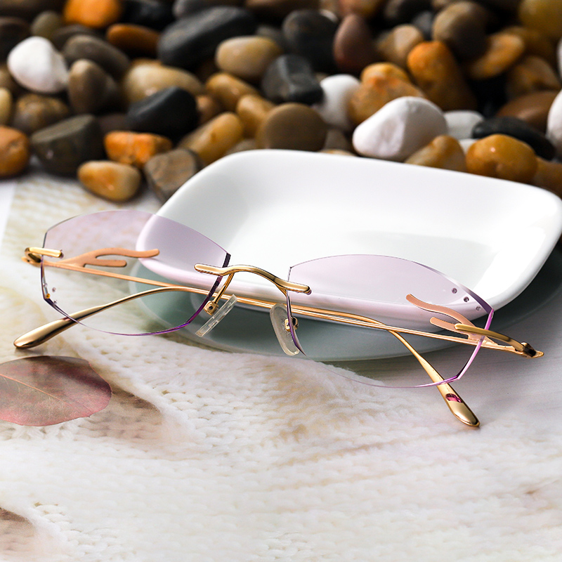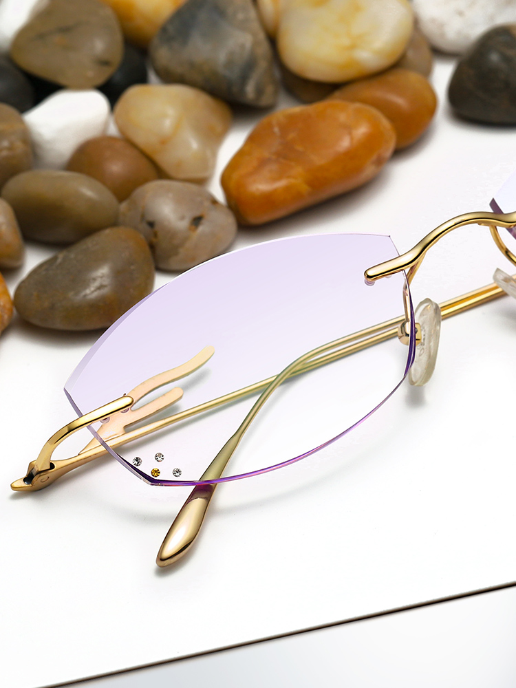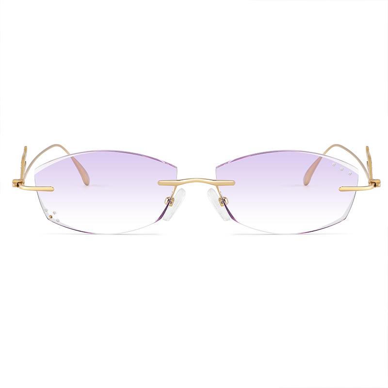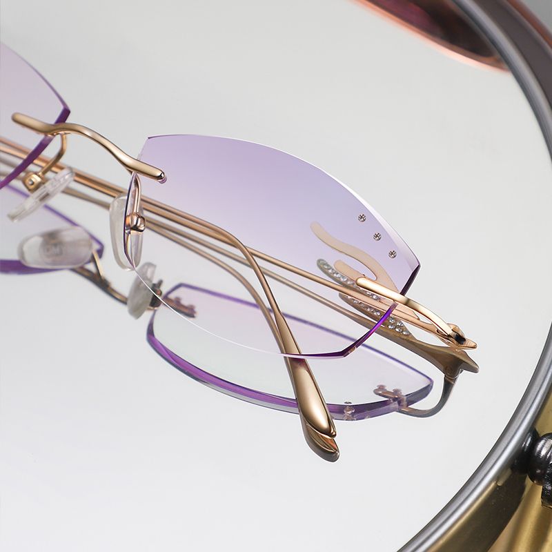 Rimless glasses female pure titanium ultralight myopia can be matched with degree cut edge color change eye protection set diamond qiangzai bird new cut 1