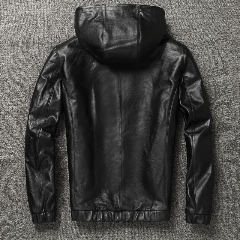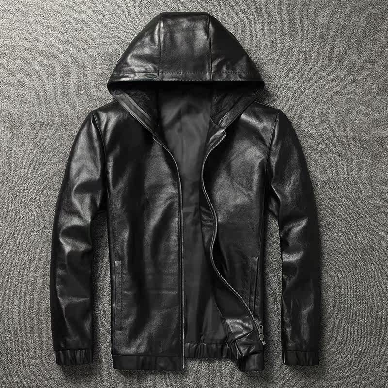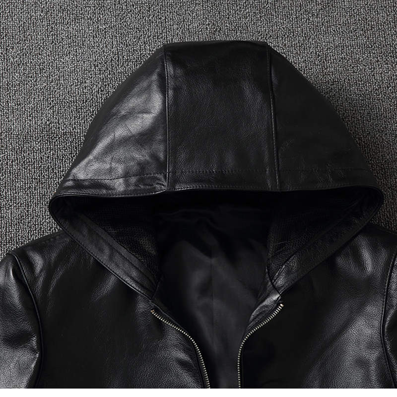 Harley locomotive imported first layer cowhide leather men's hooded hooded leather jacket thickened casual pure cowhide jacket