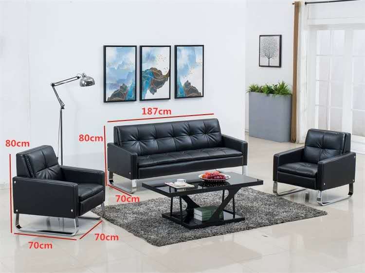 Office sofa coffee table combination business reception meeting guests negotiation leather art three-person modern minimalist black sofa