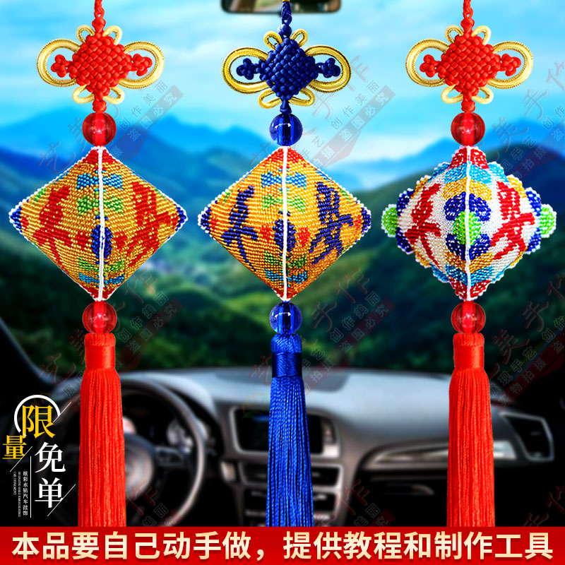 Beaded car pendant Ping An Fu cross stitch beaded blessing small ornaments handmade DIY self-embroidered Ping An Fu