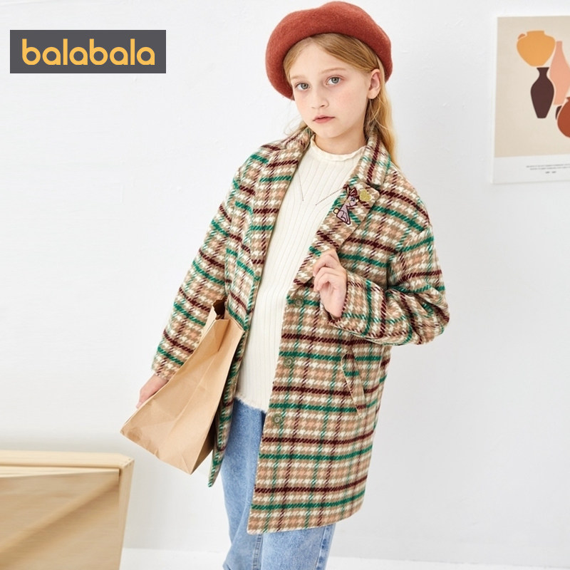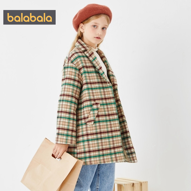 Balabala girls' big clothes CUHK children foreign plaid jacket children foreign pie 2022 autumn and winter childlike simplicity