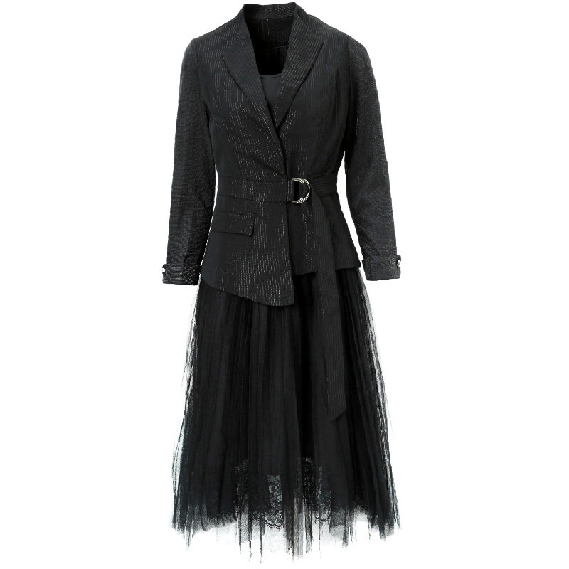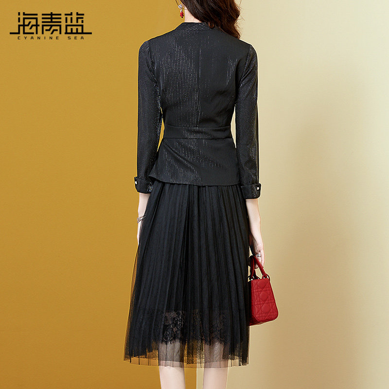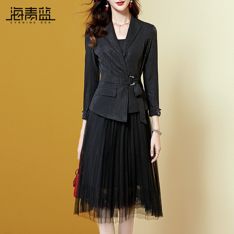 Sea Green Blue Suit Suit Skirt Woman 2022 Spring new casual Western suit Harness Yarn Skirt dress with two sets