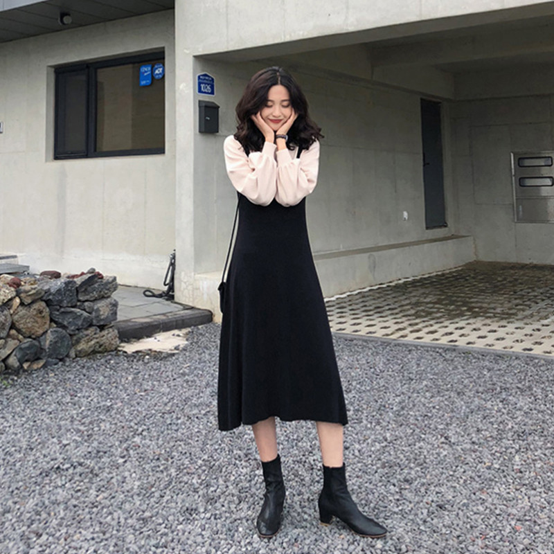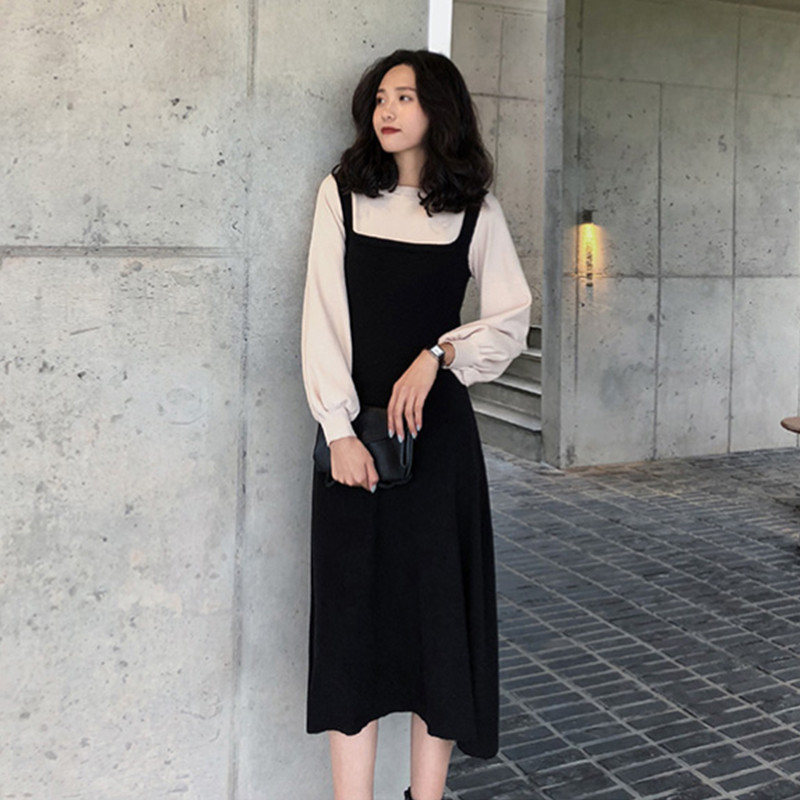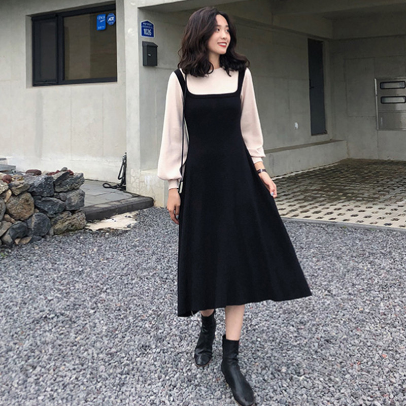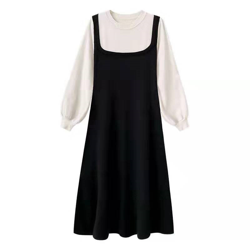 Knitted Dress (Fake Two-Piece Dress) Top Suspender Skirt (Real Two-Piece)