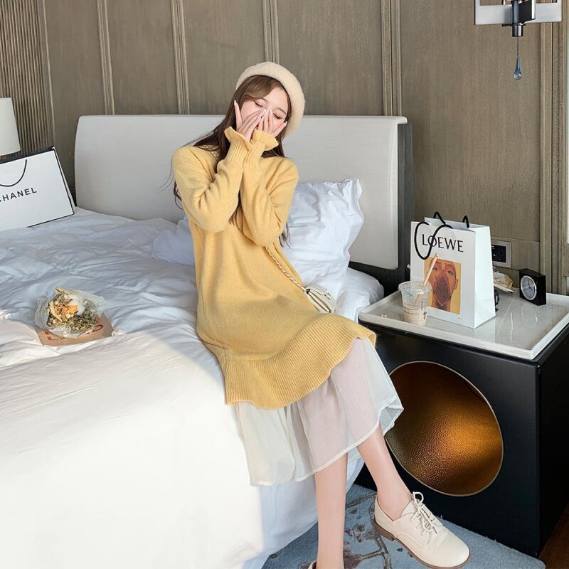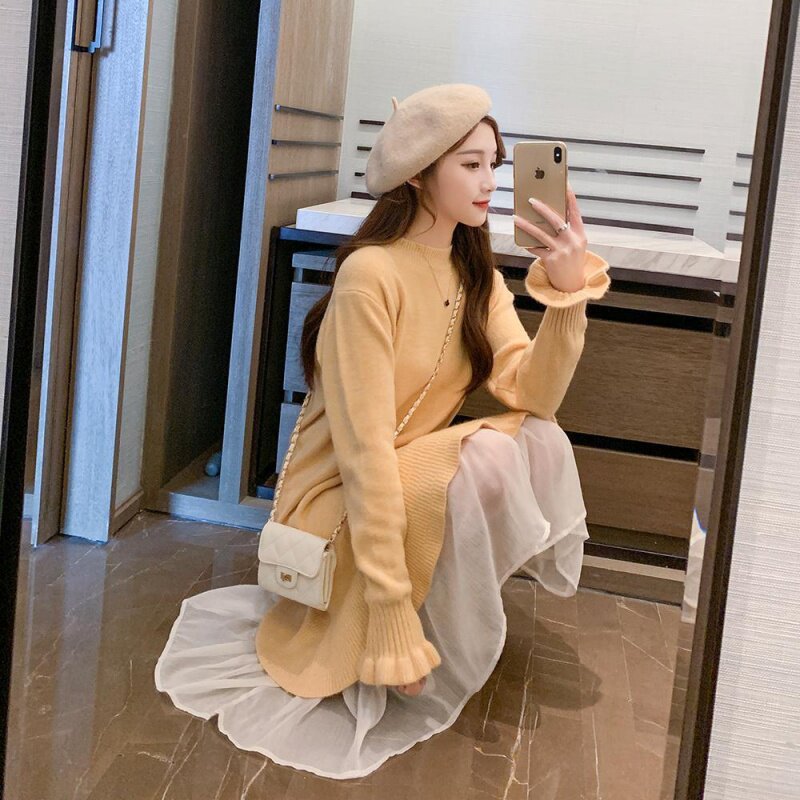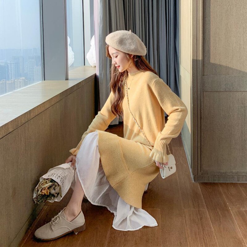 Autumn Winter Skirt 2022 New Loose Knit Skirt Dress Woman Medium Long Version Sweater Skirt Over Knee Snow Spinning Underskirt