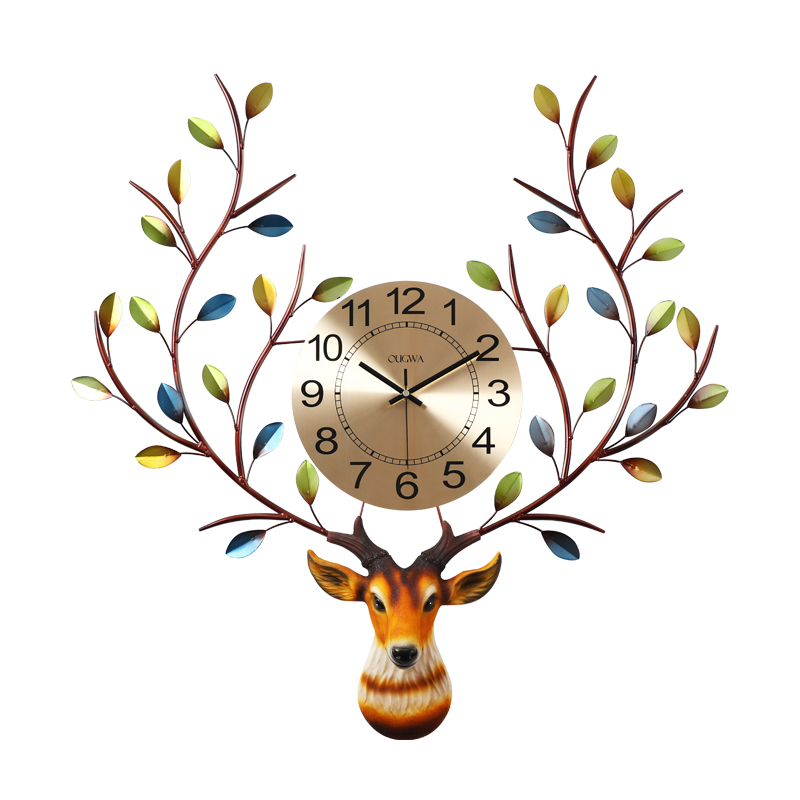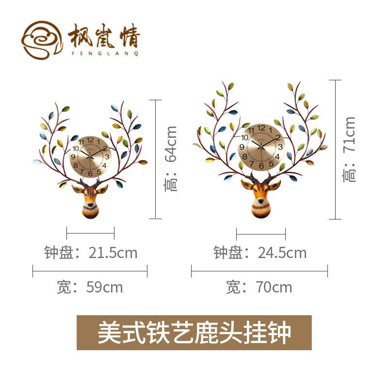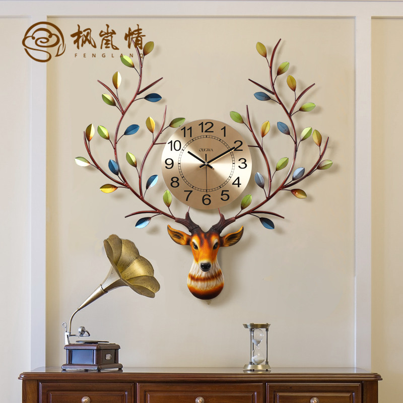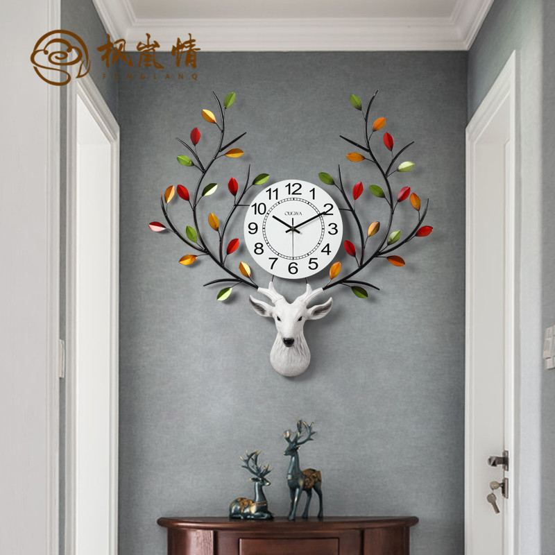 Feng Lan Qing Nordic deer head personality wall clock atmospheric living room wall watch American simple fashion clock home clock