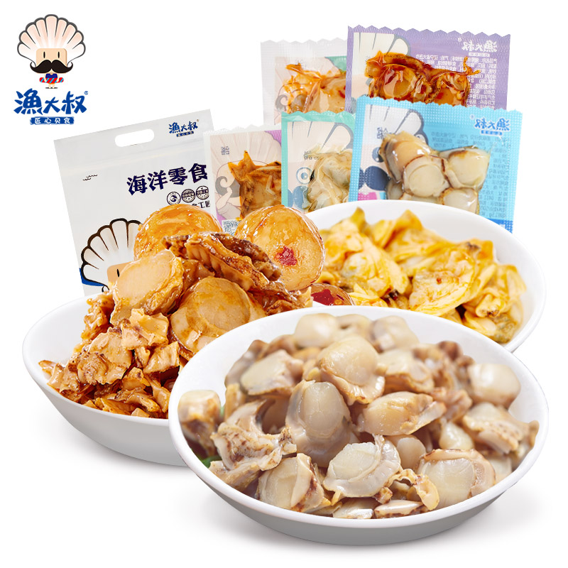 Uncle fishing instant scallop meat Ezo scallops 300g seafood snacks small package net celebrity big gift package Dalian specialty