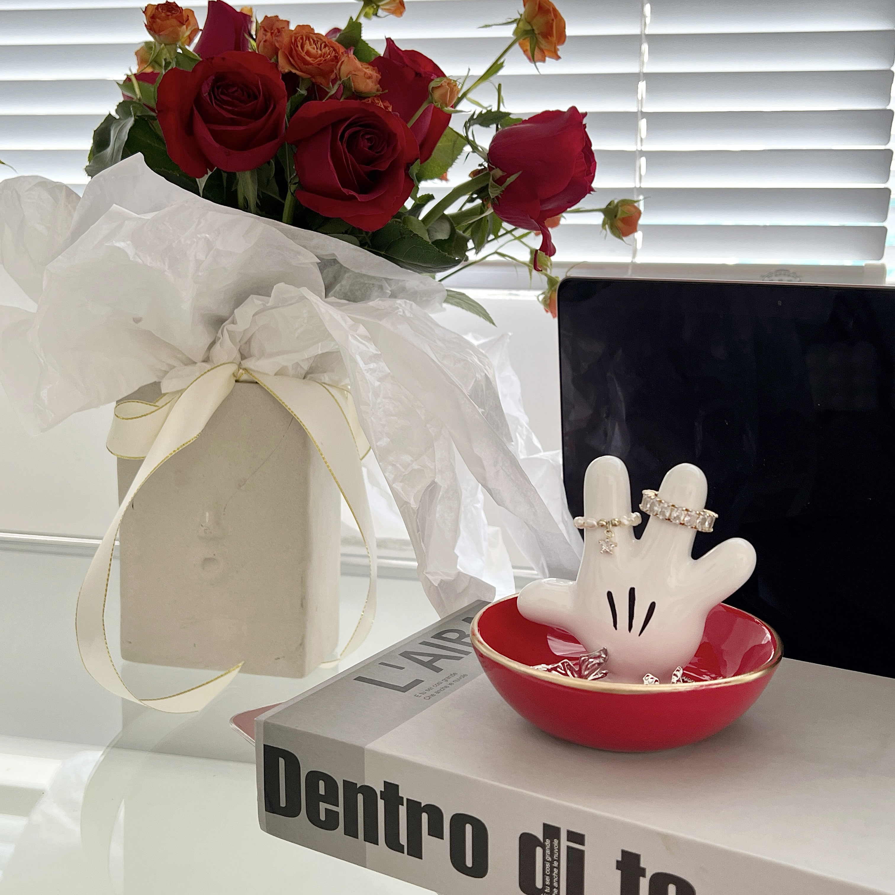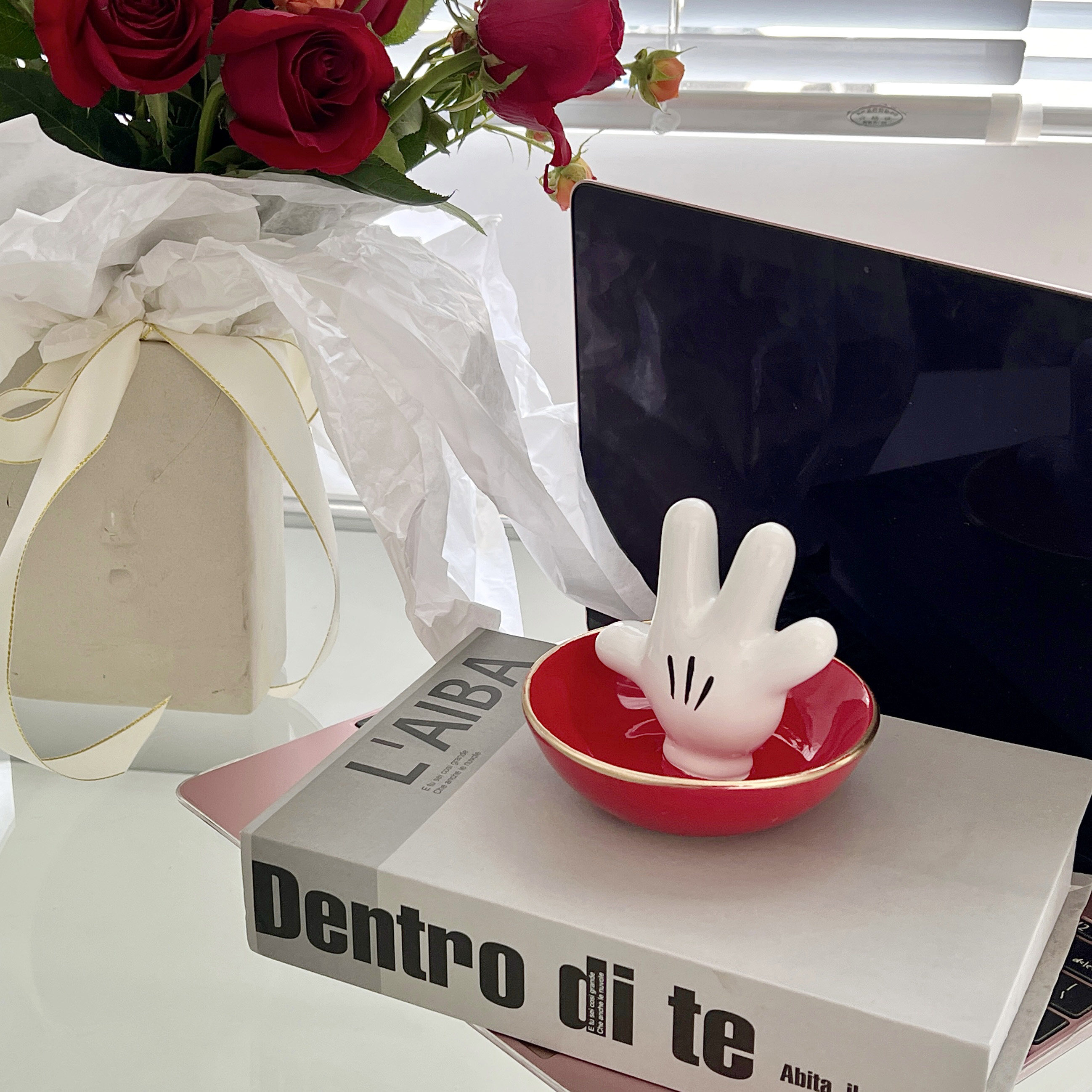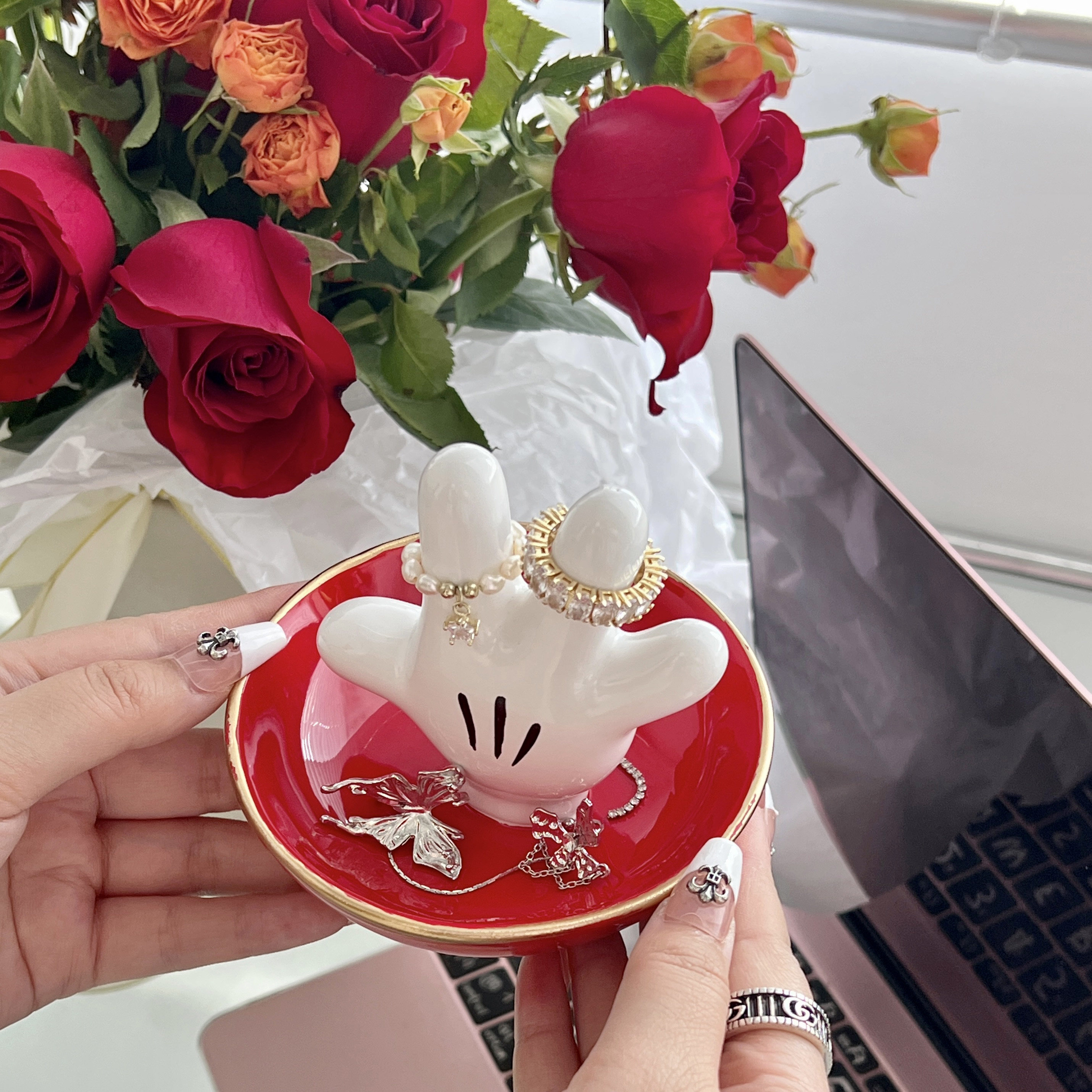 Mickey Jewelry Pan Rice Rat Web Red Ins Palm Ceramic Ring Tray Cartoon Containing Disc Decoration Hem Furnishing