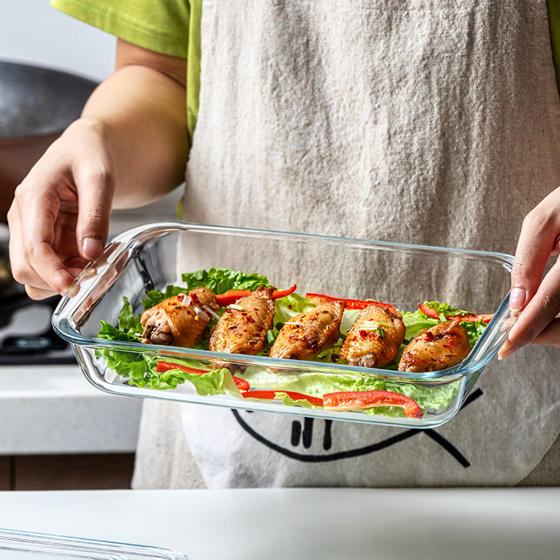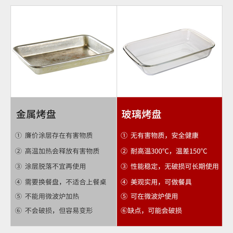 High temperature resistant glass baking tray Home rectangular non-stick microwave oven light wave oven oven with multifunctional baking tool
