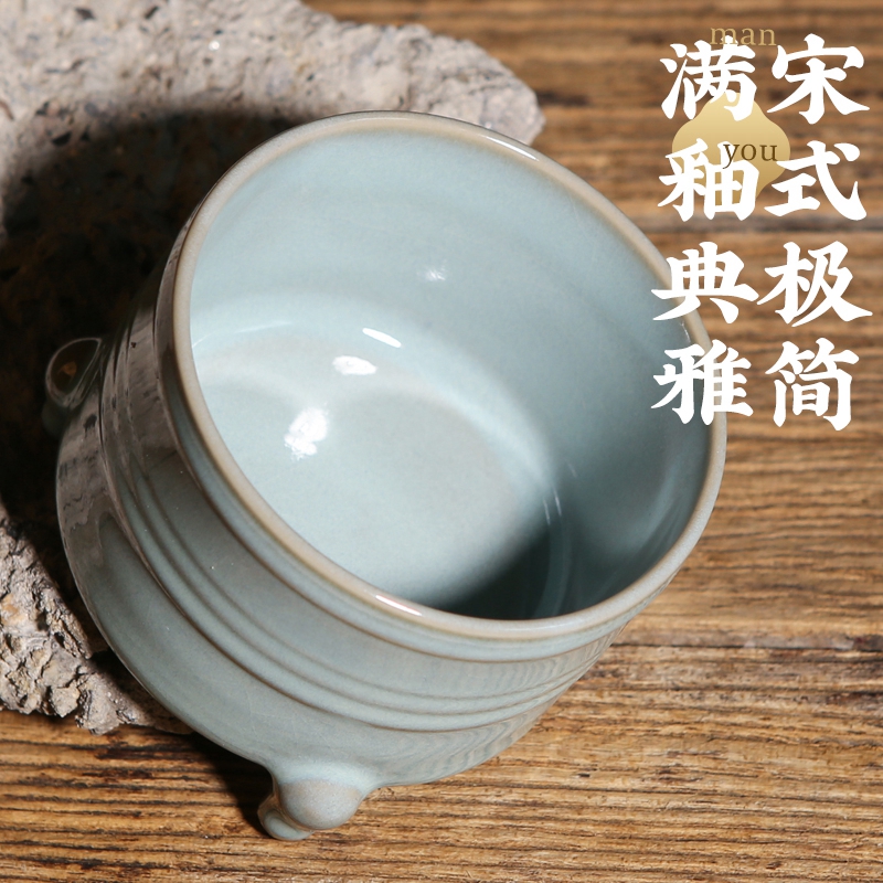 Western craftsman imitates the Northern Song Dynasty Ru kiln three-legged incense burner antique porcelain sky blue glaze incense burner ornaments incense home Liu Liangyou style