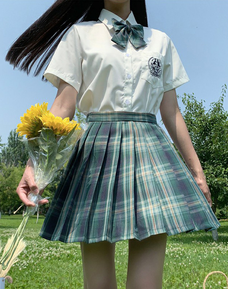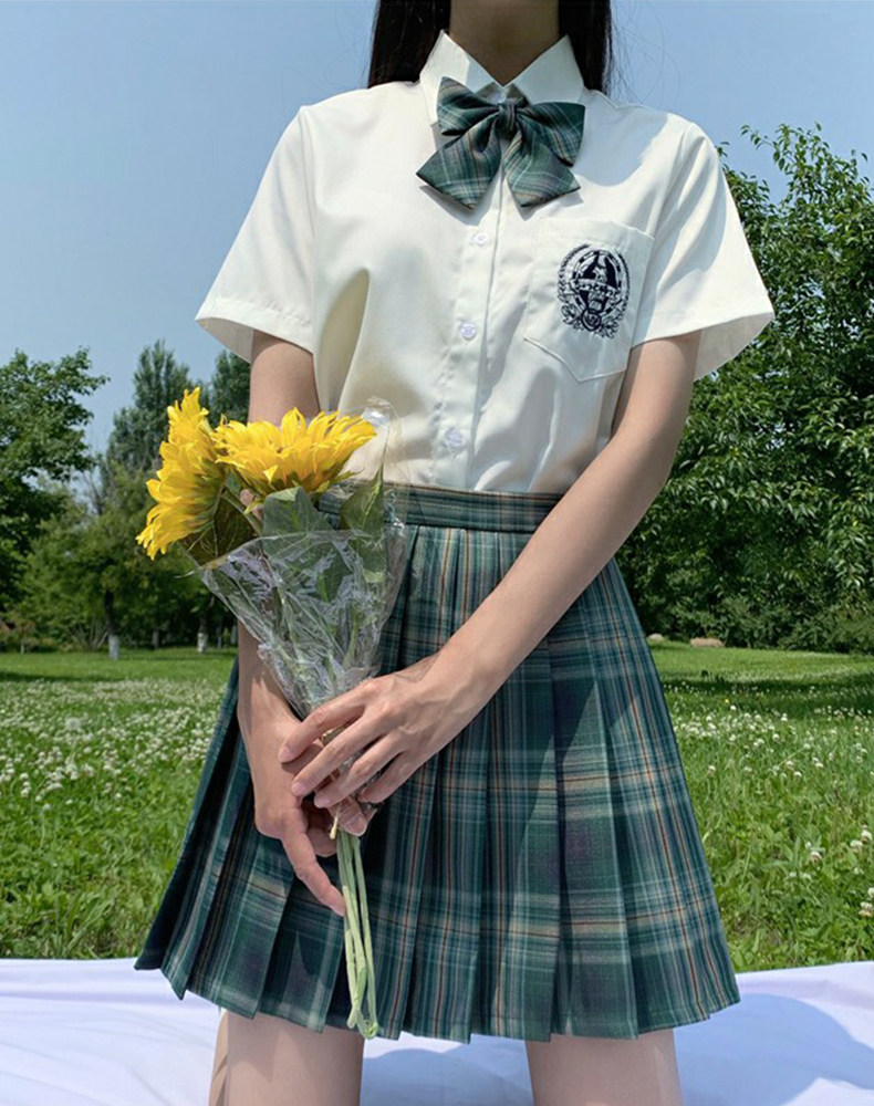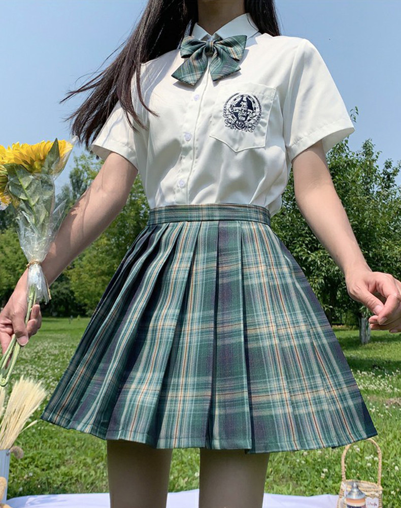 Forest letter (three-piece set)Forest letter lattice skirt bow tie (short white embroidered shirt bow tie)Three-piece taro cake pure white short-sleeved shirt short skirt bow tie E-sports girl(long white shirt bow tie) Three-piece set