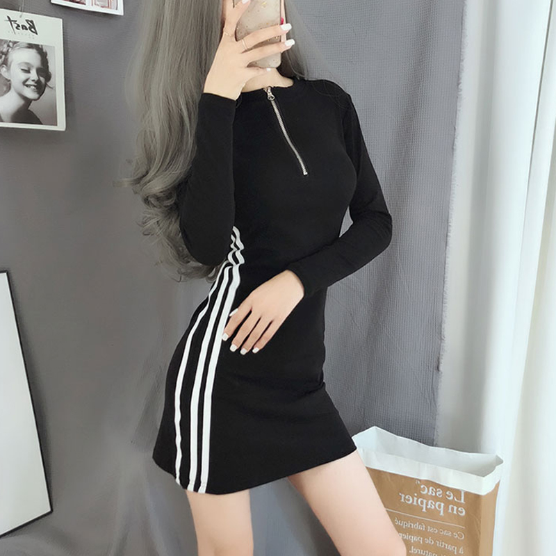 Nightclub dress small sub black Deep V Sexy workout short bag Hip Dress Woman Tight Sports Casual T-shirt Dress