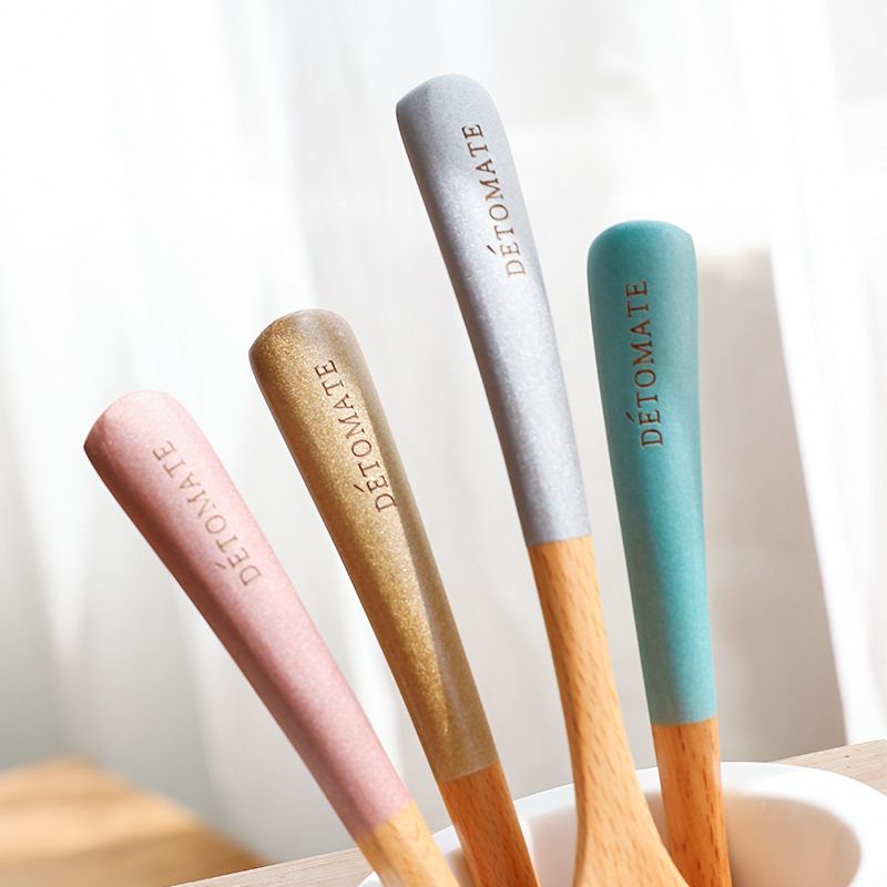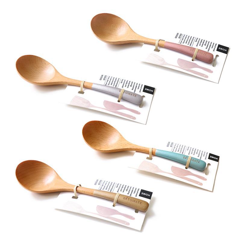 Creative Colorful Shank Wooden Soup Spoon 20 * 6cm Home Spoon Beech Wood Bend Handle Small Wood Spoon Natural Wood Cutlery