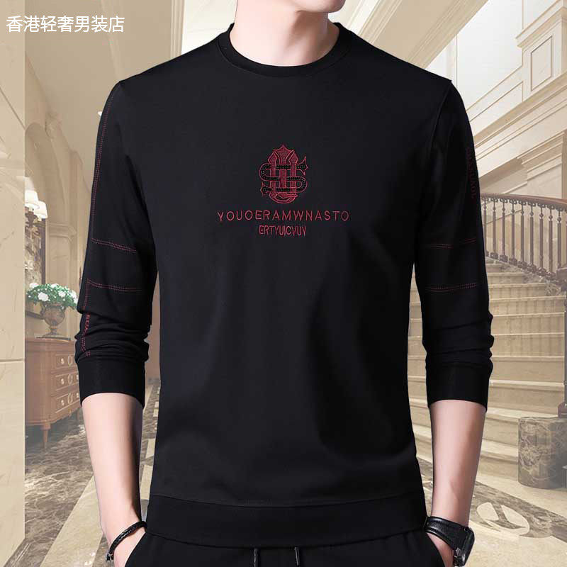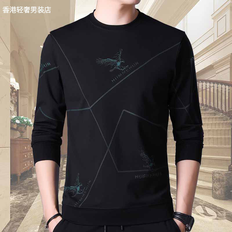 Sweatshirt men's spring autumn season new T-shirt loose trend 100 hitch men long sleeve T-shirt round printed bottom-of-the-shirt tide