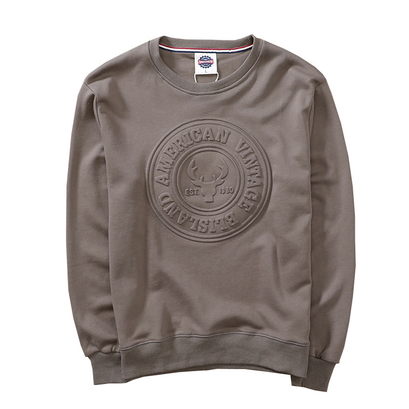 American click-style Breeze Solid Letter Tide Embossing Pure Color Fall Pop Round Collar Workout Woolen Sweatshirt-Taobao