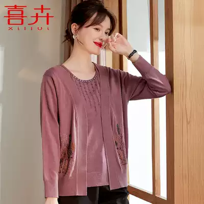 Middle-aged and elderly women's autumn dress jacket two-piece sweater 2021 new mother wear autumn thin coat