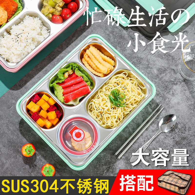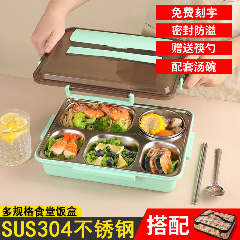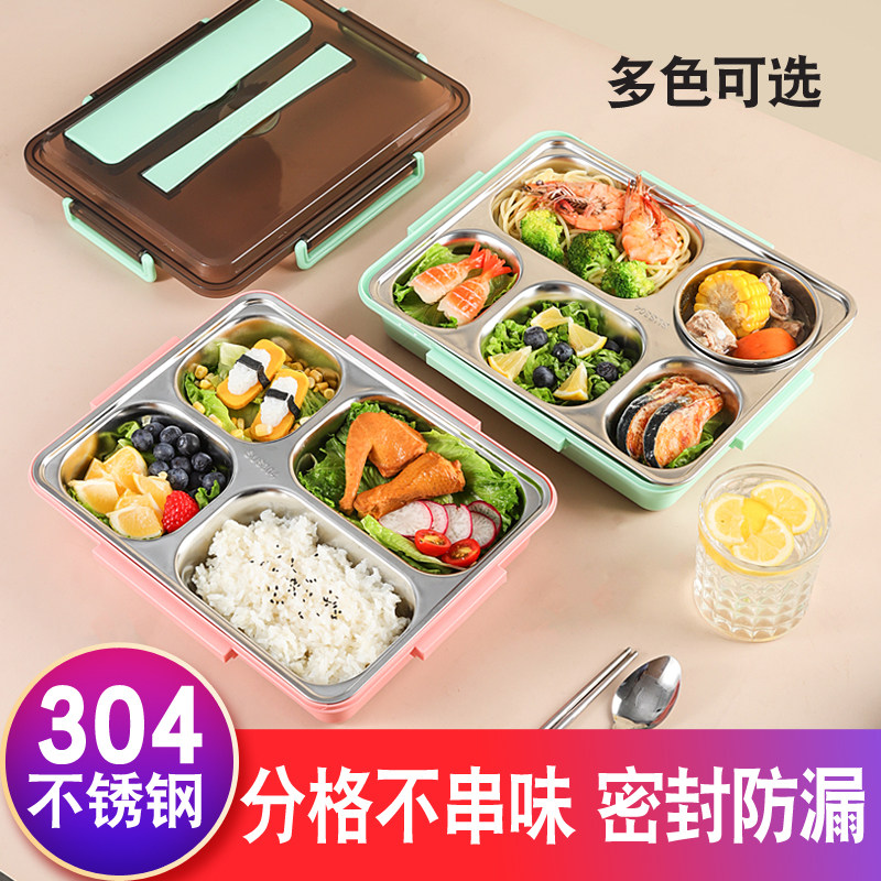 304 stainless steel lunch box student large capacity office insulation canteen portable compartment partition fast food plate bento box