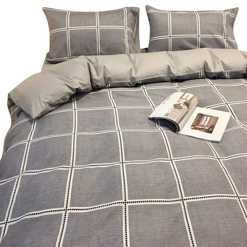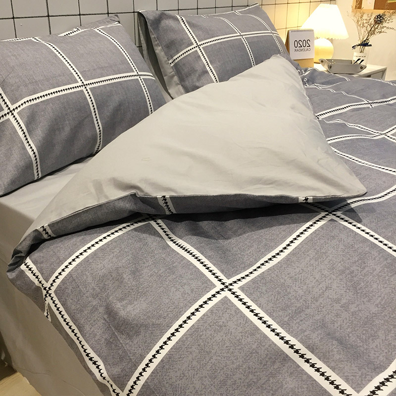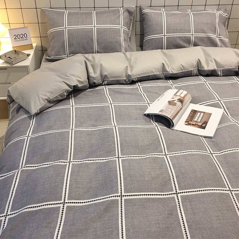 Grey Striped Plaid Full Cotton Bed Four Pieces Of Pure Cotton Minimalist Modern Three-three Style Bed Group Nordic Wind Quilt