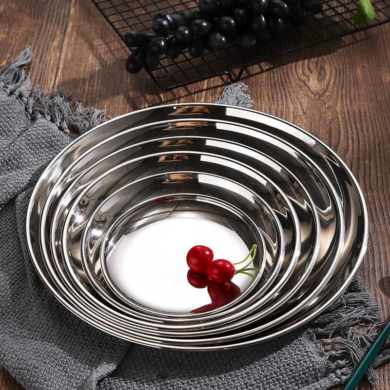 Korean-style 304 stainless steel disc thickened flat plate bone plate single-layer brushed barbecue plate flat plate shallow plate