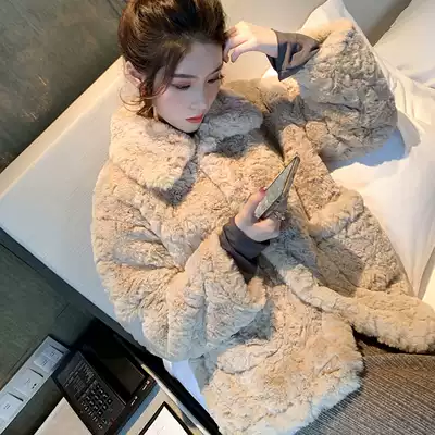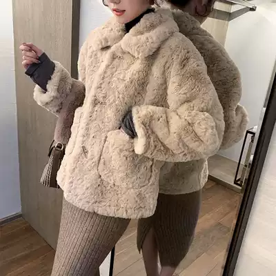 2021 Winter young imitation Rex Rabbit Fur Coat women's short horn buckle hairy coat College trend