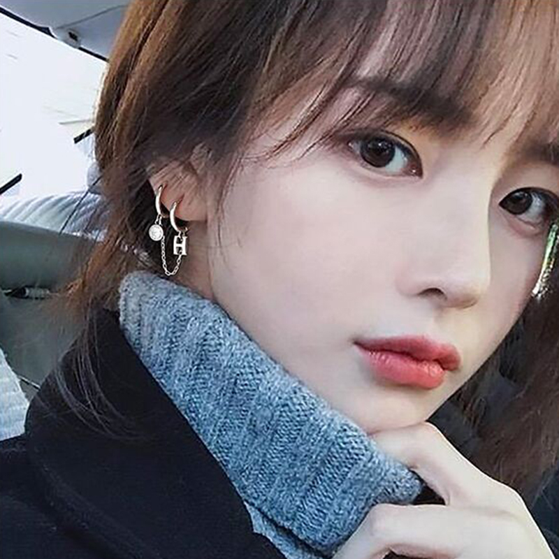 s925 silver letter H double ear buckle female simple design sense multi-ear earrings ins niche design 2020 new trend