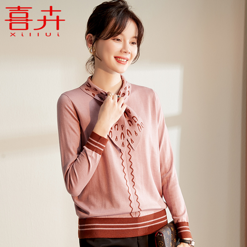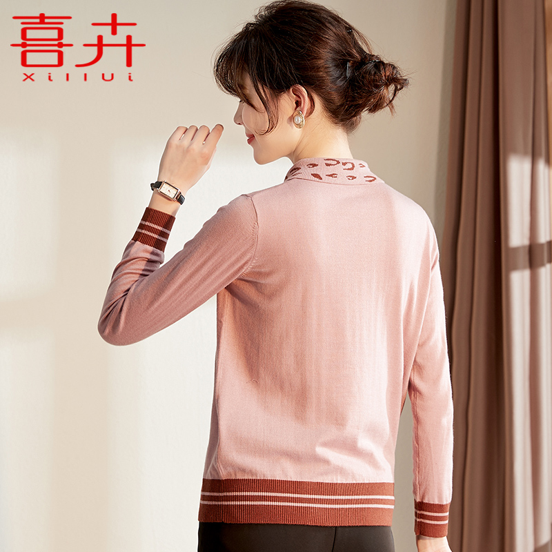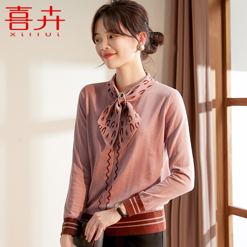 Middle-aged and elderly women's spring and autumn knitted bottoming shirts thin section 40-year-old 50-year-old mother's autumn fashion fashion collar top clothes