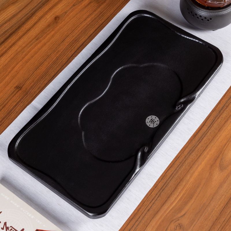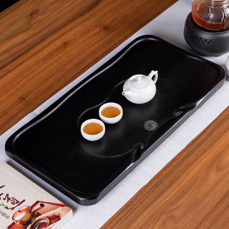 Wooden medium household tea tray solid wood whole block Kung Fu Kemu tea tray set black imitation stone tea tray strong and simple