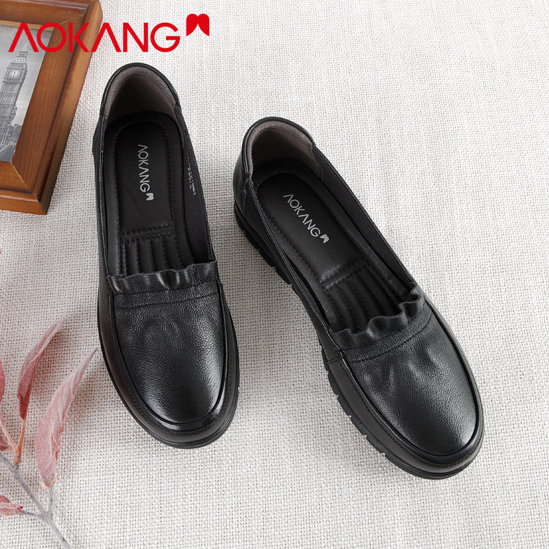 Okang Woman Shoes Soft Soft Soft Soft Soft Soft Mommer Shoes Summer Flat Solid Shoes Middle Age Slip Shoes