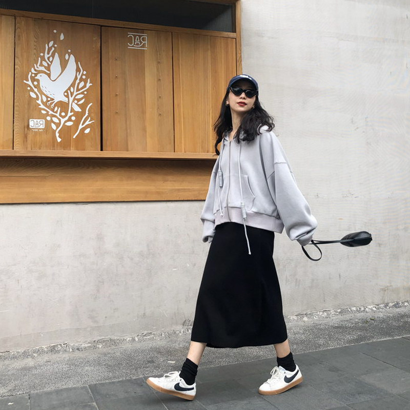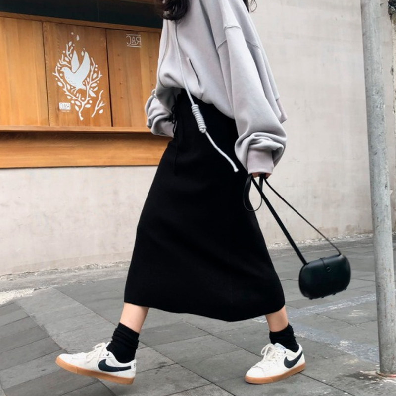 Maternity skirt women's autumn and winter loose straight knit mid-length skirt tide mom wrapped hips adjustable one step skirt