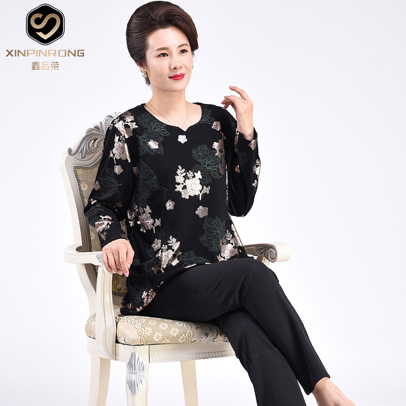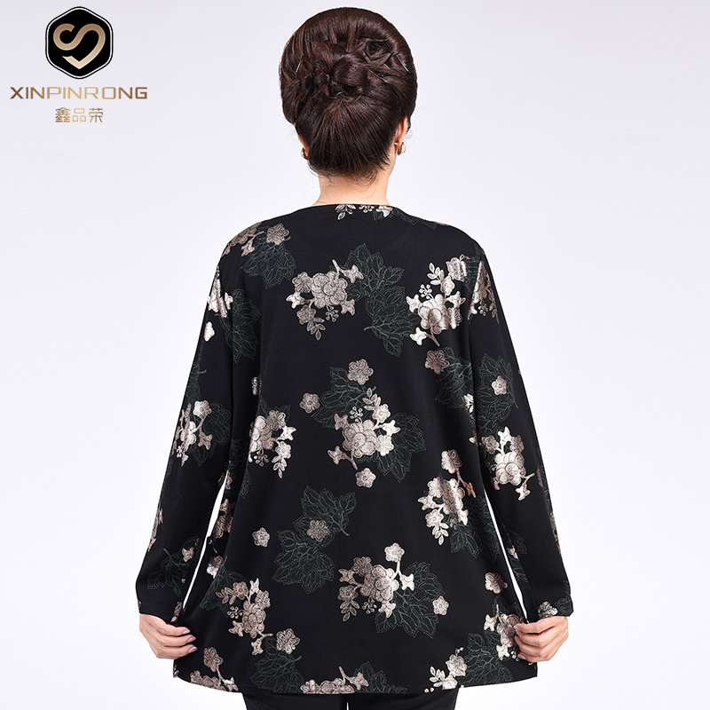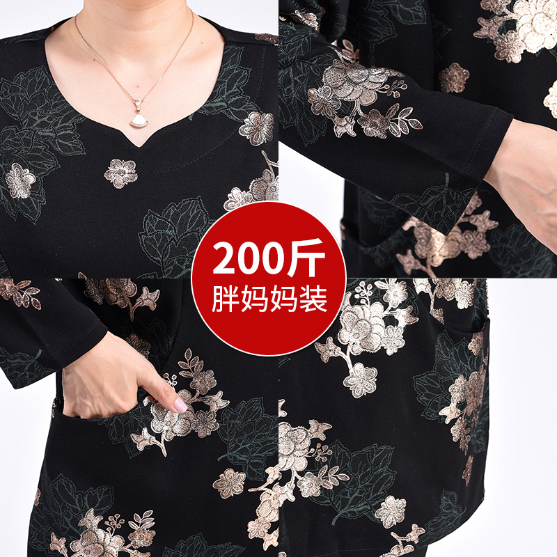 2021 spring 200 pounds of fat mom plus cashmere printed long-sleeved T-shirt in the elderly women's clothing plus fat plus small shirt