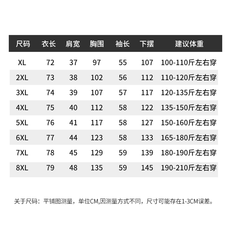 XL Bust 97CM (recommended 100-110 catty) 2XL Bust 102CM (recommended 110-120 catty) 3XL bust 107CM(recommended 120