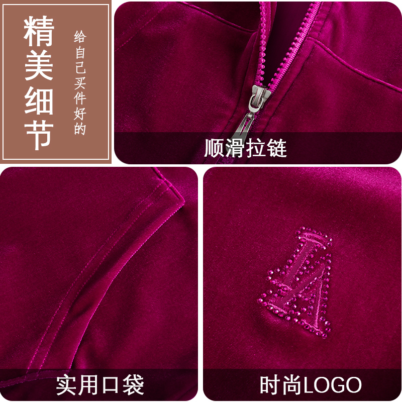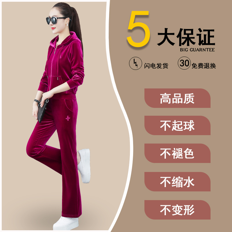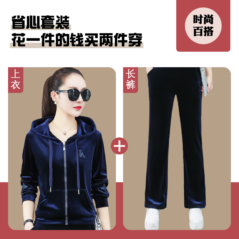 Middle aged sports suit women's spring and autumn 2022 new fashion foreign moms dress gold velvet even hat sportswear casual wear