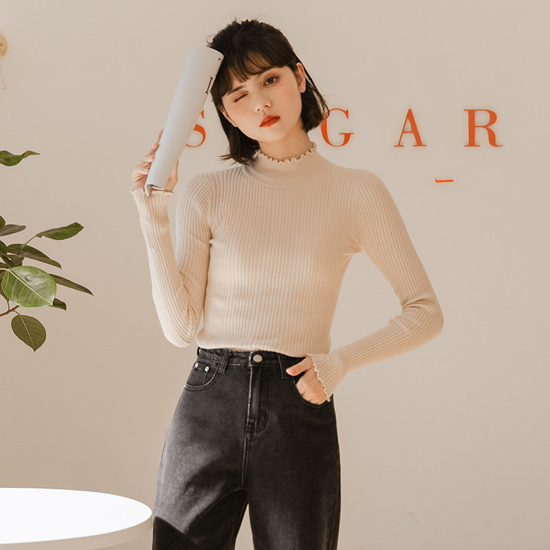 Solid color half-high collar knitted bottoming shirt women's 2022 autumn and winter new Korean version of slim and thin all-match inner top