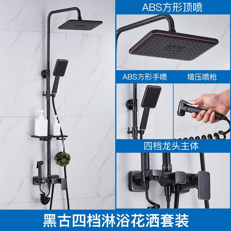 Domestic cosmetic room black copper four-stage wall-style bathroom shower shower artifacts shower suit