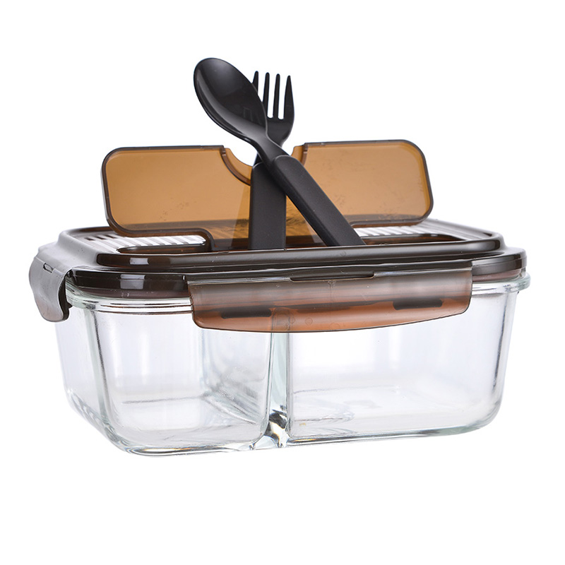 Rectangular 1020ML-2 divider strap tableware (brown) (send original 650ML)