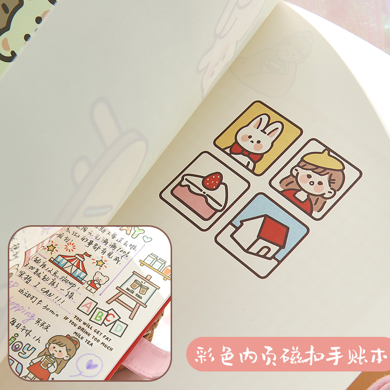 Cute handbook set net red girl heart handbook simple ins wind fairy notebook sub-checkered book exquisite literary and art diary color pages student cane book tool material full set