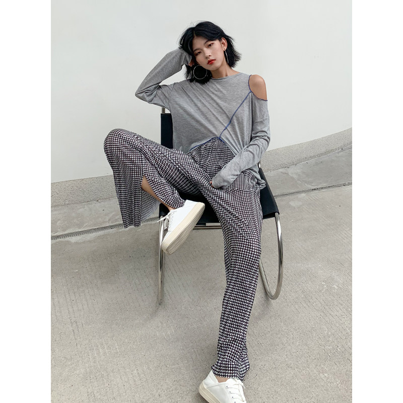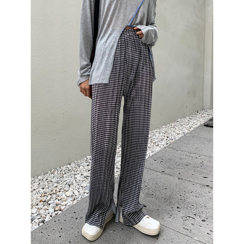 BAYUE August open fork wide leg pants high waist casual straight drum Pants Woman Pituality Spring 2021 New