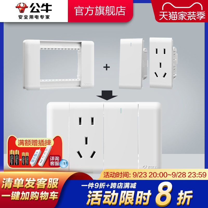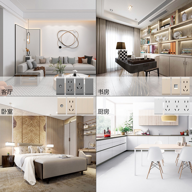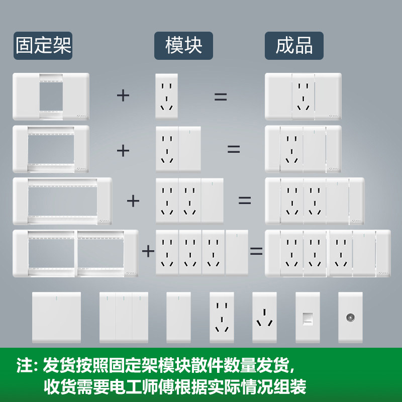 One TV module One computer module (Category 6, wire type) One computer module (Category 5, Super Category 5) Three double-cut modules (need to purchase three to achieve three-open) Three-open double