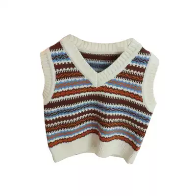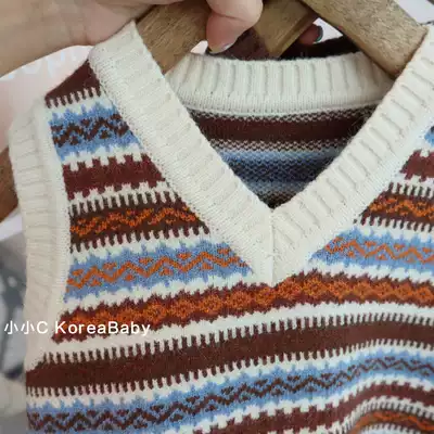 Small retro style ~ V-neck knitted vest Korean baby 2021 autumn warm men and women baby waistcoat