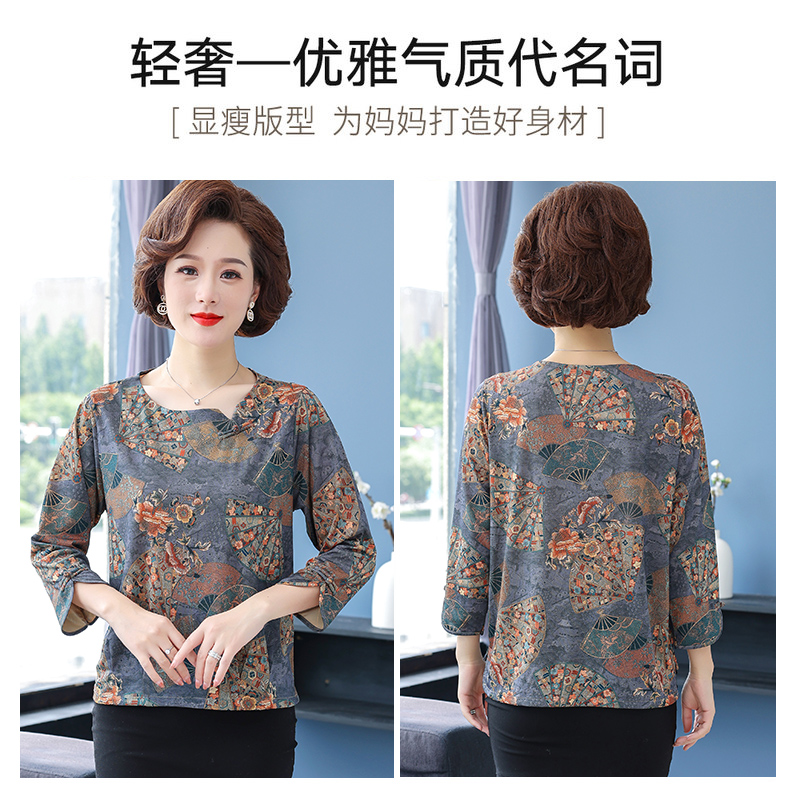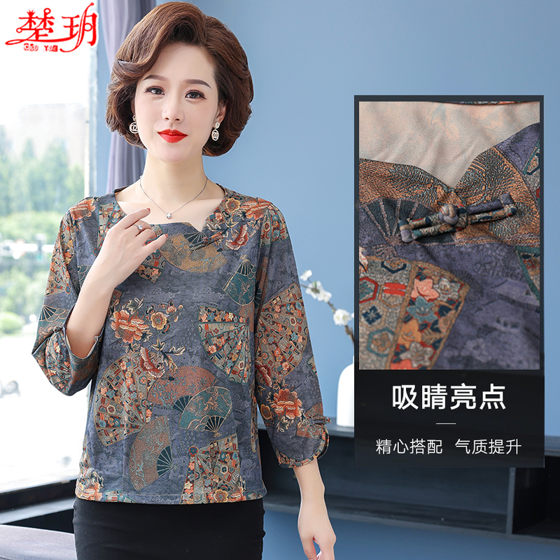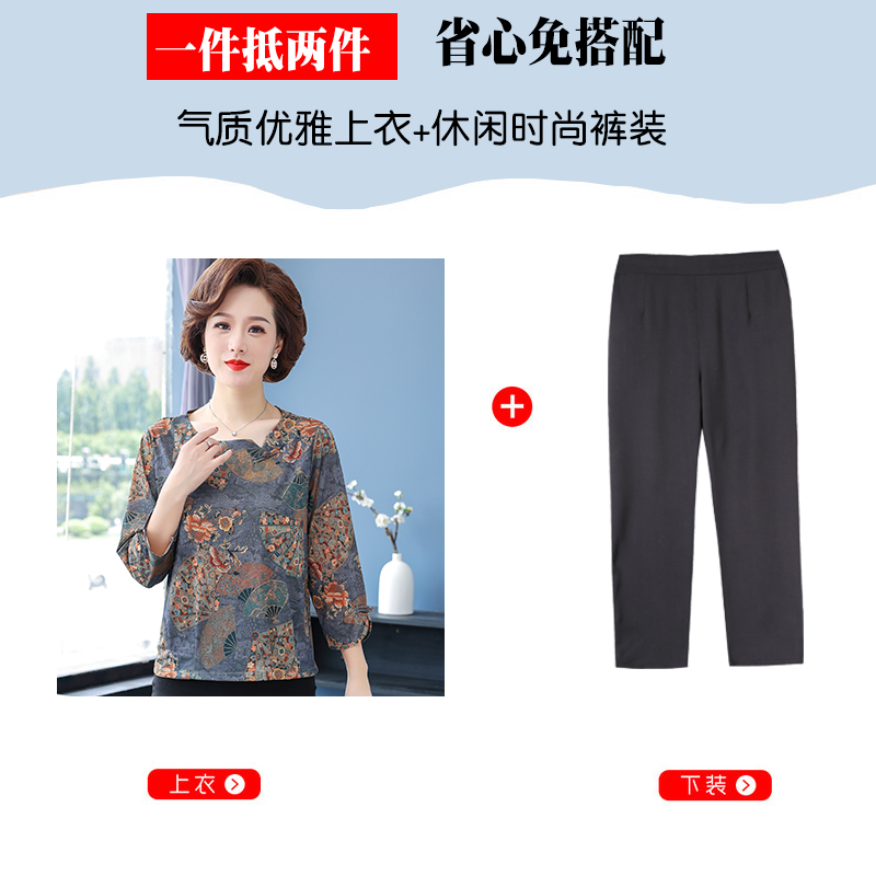 Middle Aged Mother Summer Dress Foreign Pie Long Sleeve T-shirt Suit New Middle Aged Lady Autumn Two Sets Fashion Short Shirt Blouses