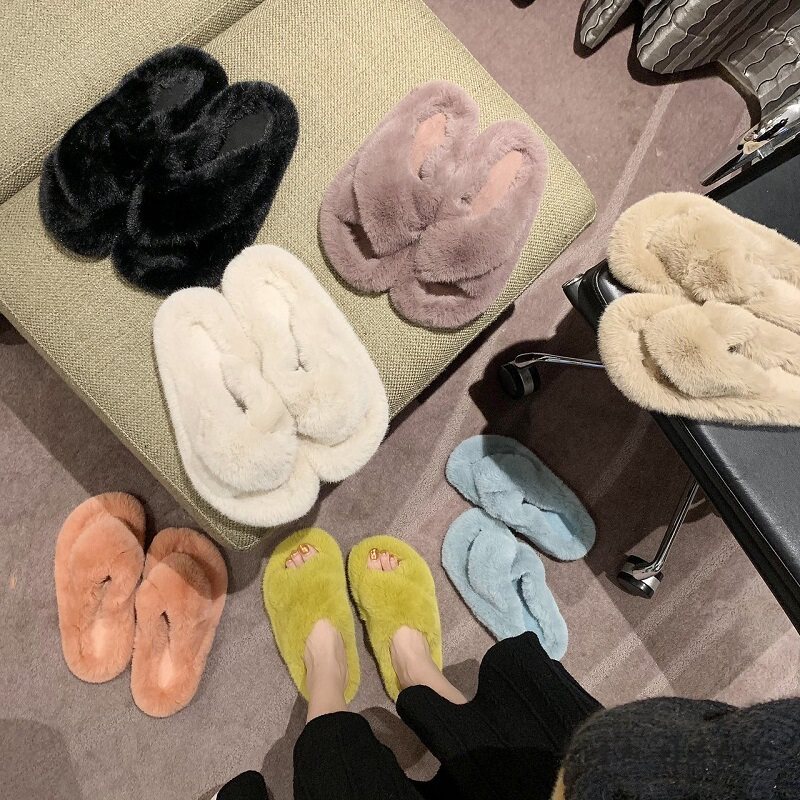 Cross fur slippers Orange cross fur slippers Off-white cross fur slippers Khaki cross fur slippers Purple cross fur slippers Black cross fur slippers Yellow cross fur slippers Blue